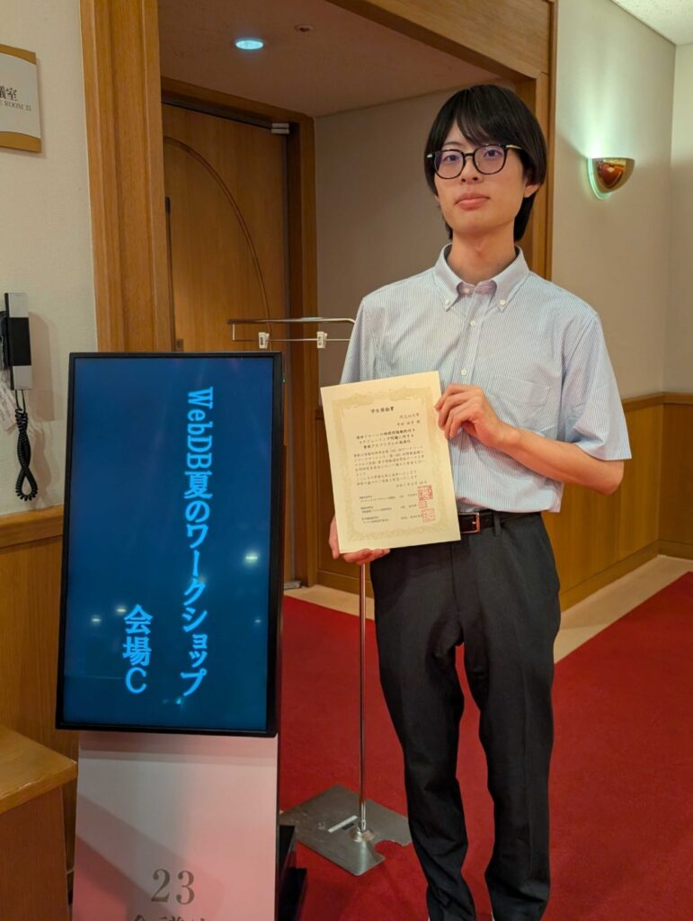 寺田由宇さん(計算情報学研究室)が WebDB 夏のワークショップ 2025 において「学生奨励賞」を受賞しました